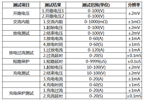 5.短路保護(hù):測(cè)試電池正負(fù)極短接電池切斷保護(hù)時(shí)間(微秒級(jí)別)。